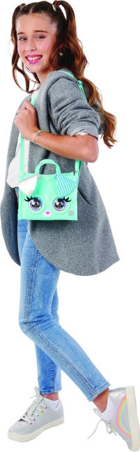 Stylowa torebka PURSE PETS VIPooch w miętowym kolorze ożywi każdą stylizację, a dzięki interaktywnym funkcjom zapewni świetną zabawę. Reaguje na dotyk, mruga i oferuje ponad 30 dźwięków i reakcji. Ma regulowany pasek do 100 cm, uchwyt do ręki i opcję noszenia crossbody, oczy w stylu pop-art, uszka ze srebrzystym efektem oraz zapięcie na napę. Świetny prezent dla dzieci od 4 lat.