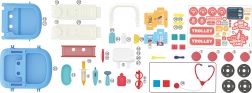 • Zawiera różne narzędzia medyczne, które pozwalają dzieciom naśladować prawdziwe procedury medyczne.