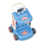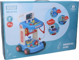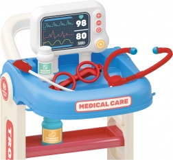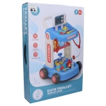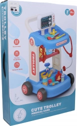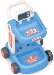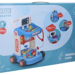Wózek medyczny z akcesoriami dostarcza małym lekarzom wszystkiego, czego potrzebują do swojej zabawy. Jest wyposażony w kółka dla łatwego przemieszczania się.