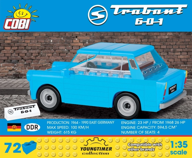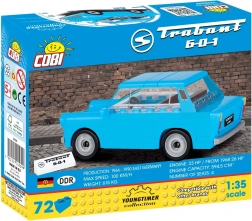 Zbuduj legendarny samochód w skali 1:35! Ten zestaw COBI Trabant 601 zawiera 72 elementy i wiernie oddaje ikoniczne linie klasyka z NRD. Idealny jako model kolekcjonerski, ale także do kreatywnej zabawy. Klocki są kompatybilne z innymi markami, mają trwałe nadruki i spełniają normy bezpieczeństwa.