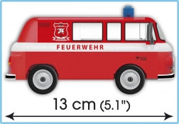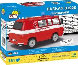 Barkas B1000 to ikoniczny samochód dostawczy i mikrobus produkowany w latach 1961–1991 w dawnej NRD. Wersja Feuerwehr została dostosowana do potrzeb jednostek strażackich. Ten zestaw COBI wiernie oddaje charakter historycznego pojazdu w skali 1:35, a dzięki wysokiej jakości nadrukom świetnie wygląda bez naklejek.