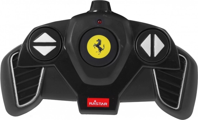 Pilot z logo Ferrari umożliwia łatwe i precyzyjne sterowanie samochodem. Funkcja sterowania kierunkiem oraz ergonomiczny design sprawiają, że jest idealny dla fanów zdalnie sterowanych modeli.