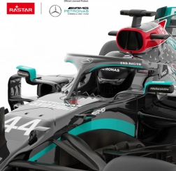 Ten licencjonowany model RC MERCEDEs-AMG F1 W11 EQ Performance wiernie odwzorowuje detale słynnego bolidu Formuły 1. Na karoserii znajdziesz logotypy zespołu, naklejki sponsorskie oraz elementy aerodynamiczne, które nadają mu autentyczny wygląd. Skala 1:12 podkreśla imponujące proporcje i sprawia, że model świetnie prezentuje się również na półce.