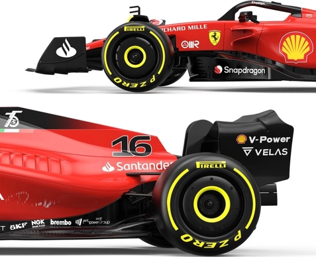 Poczuj emocje toru wyścigowego z kultowym czerwonym bolidem FERRARI F1. Model wyróżnia się wiernie odwzorowaną karoserią, licencyjnym wyglądem z naklejkami sponsorów oraz solidnym wykonaniem zapewniającym długą trwałość. Dzięki gumowym kołom oferuje doskonałą trakcję i stabilność, a miękki przedni i tylny spojler lepiej znosi uderzenia.