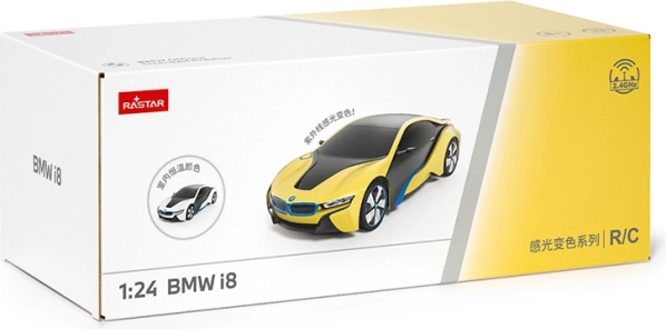 RASTAR zdalnie sterowany model BMW i8 to futurystyczny samochód z unikalnym lakierem, który zmienia kolor z białego na żółty pod wpływem światła słonecznego lub LED. To licencjonowane BMW łączy najnowsze technologie z wiarygodnie odwzorowanymi detalami prawdziwego auta.