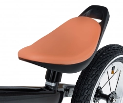 Ergonomiczne siodło z ekoskóry i gumowe rączki zapewniają wygodne i bezpieczne użytkowanie dla dzieci.