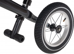 - Pompowane opony: zapewniają płynną i bezpieczną jazdę dzięki bieżnikowanym oponom i łożyskowanym kołom.