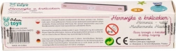 Różowa harmonijka ma do dyspozycji kilka otworów do grania, co pozwala tworzyć zróżnicowane melodie. Materiał, prawdopodobnie metalowy, gwarantuje trwałość i długą żywotność. Estetyczny motyw harmonijki dodaje uroku temu instrumentowi muzycznemu, czyniąc go popularnym wyborem wśród muzycznych zabawek dla dzieci.