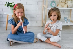 Odkryj świat muzyki z tą uroczą drewnianą flet, idealną dla małych muzyków. Doskonała dla dzieci powyżej 3 lat, oferuje prosty i zabawny sposób nauki muzyki.