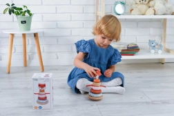 Żywe kolory i wzory na poszczególnych częściach wieży wspierają rozwój percepcji wzrokowej.
