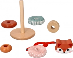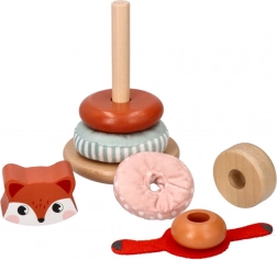 Wieża do układania z motywem lisa to idealna zabawka dla małych dzieci, które chcą odkrywać swoje zmysły. Każdy element zabawki oferuje różne tekstury, od gładkiego drewna po miękkie tkaniny, i jest przeznaczony do rozwoju integracji sensorycznej. Jasne kolory i wzory pomagają w rozwijaniu percepcji wzrokowej, podczas gdy układanie i manipulacja poszczególnymi elementami wzmacnia drobne i duże zdolności motoryczne.