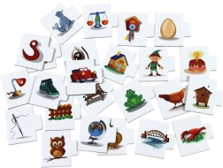 - Dziecko dopasowuje elementy z literami do obrazków tak, aby powstała prawidłowa nazwa przedmiotu.