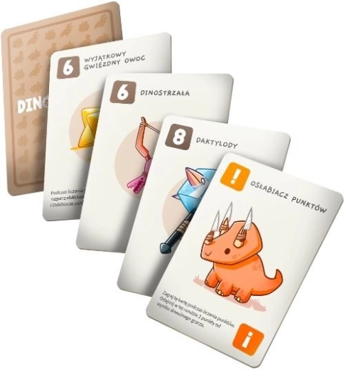 - Wygrywa dinozaur, który jako pierwszy osiągnie 50 punktów na torze ucieczki albo jako jedyny pozostanie na arenie, walcząc o życie!