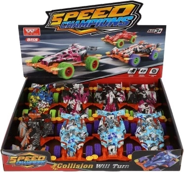 Dzieci mogą wybierać spośród czterech wersji kolorystycznych, co czyni ten zestaw świetnym dla kolekcjonerów. Każdy samochodzik jest zderzakowy, co dodaje zabawy, gdyż żadna przeszkoda nie jest nie do pokonania.