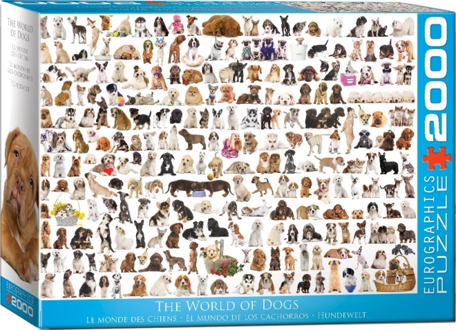 Ciesz się wyzwaniem z puzzle EUROGRAPHICS Świat psów o wymiarach 99,7 x 67,6 cm. Dzięki unikalnej wycinance, która nie naśladuje standardowej siatki, elementy mają nietypowy kształt, a rogi i krawędzie nie zawsze są w jednej osi, co zwiększa trudność układania.