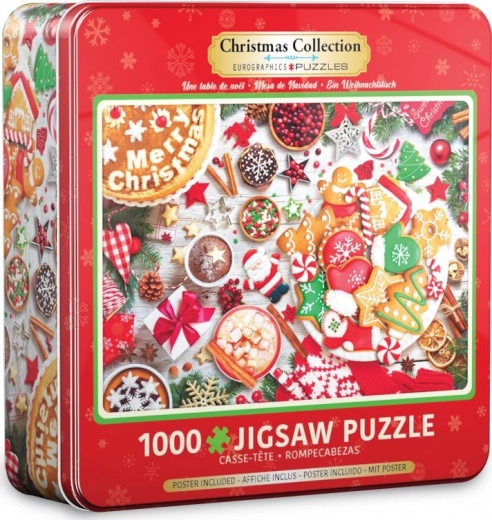 Eurographics puzzle Świąteczny stół w metalowym pudełku oferuje 1000 elementów świątecznej zabawy i praktyczne opakowanie.