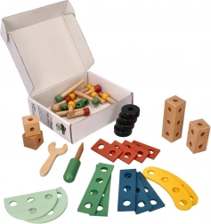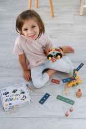 Dzięki śrubom i innym elementom dzieci ćwiczą małą motorykę oraz koordynację ruchową.