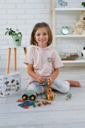 Przedstawiamy wyjątkowy drewniany zestaw konstrukcyjny dla dzieci, który wspiera rozwój koordynacji ręka-oko, logicznego myślenia i kreatywności. Zestaw zawiera śruby, listwy, nakrętki, koła oraz śrubokręt i klucz – wszystko, czego potrzeba do składania pojazdów.