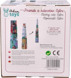 Piramida z kubków Safari zapewnia dzieciom zabawę, a jednocześnie rozwija ich umiejętności. Zestaw zawiera kubki o różnych rozmiarach, które można łatwo układać do wysokości aż 96 cm. Każdy kubek jest ozdobiony barwnymi ilustracjami zwierząt, które pobudzają dziecięcą wyobraźnię.