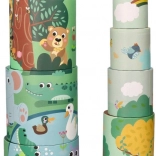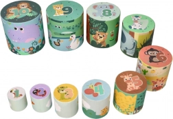 Piramida z kubków Safari to doskonała zabawka edukacyjna dla dzieci od 18 miesięcy. Ten zestaw kolorowych kubków z ilustracjami zwierząt wspiera rozwój małej motoryki i koordynację ręka-oko.