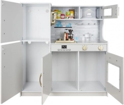 W zestawie znajduje się bogate wyposażenie – garnek, patelnia z pokrywką oraz 4 narzędzia kuchenne. Wyjmowany zlew można napełnić wodą dla realistycznego „mycia naczyń”. Zabawa w odgrywanie ról rozwija wyobraźnię, kreatywność i umiejętności społeczne dzieci.