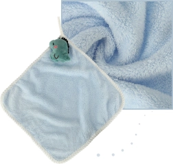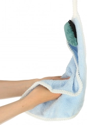 Mieszanka poliestru i nylonu jest przyjemnie miękka w dotyku, dobrze chłonie i szybko schnie, dzięki czemu ręczniczek szybko jest gotowy do ponownego użycia. Praktyczna pętelka pozwala zawiesić go na haczyku dokładnie na dziecięcej wysokości. Pielęgnacja jest prosta – pranie w pralce w 30 °C z podobnymi kolorami.