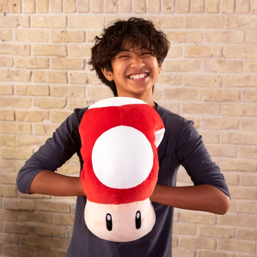Uroczy i super miękki pluszowy grzybek inspirowany światem Super Mario wnosi wygodę i styl do każdego pokoju. Ekskluzywna linia Mocchi Mocchi zachwyca ultramiękką powierzchnią, puszystym wypełnieniem oraz kultowym czerwonym kapeluszem w białe kropki. Idealny jako przytulanka, poduszka i designerska dekoracja dla dzieci i dorosłych.