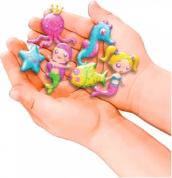 Kompletny zestaw kreatywny z foremkami syren i morskich stworzeń. Nakap żel do formy, zanurz w wodzie i obserwuj magiczną przemianę w elastyczną figurkę 3D.