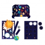 Ten kreatywny zestaw STEM przybliża dzieciom kosmos w formie zabawy. Z kartonowych elementów złożą model Słońce–Ziemia–Księżyc, na którym zrozumieją rotację, orbitę oraz fazy Księżyca. Za pomocą specjalnych elementów wyświetlą gwiazdozbiory bezpośrednio na suficie swojego pokoju, a dzięki elementom Glow in the Dark stworzą niepowtarzalną, świecącą konstelację.