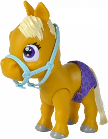 Naucz się opiekować swoim pupilem – konik pije wodę z dołączonej buteleczki, a pieluszka po zamoczeniu zmienia kolor, co dodaje zabawie realizmu.