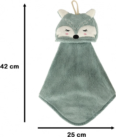 Dziecięcy ręczniczek do rąk z niebieskim motywem liska wspiera nawyki higieniczne w formie zabawy. Dzięki rozmiarowi 42 × 25 cm doskonale pasuje do małych dziecięcych dłoni i jest przyjemny w dotyku.