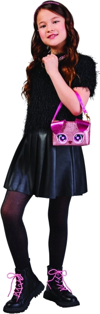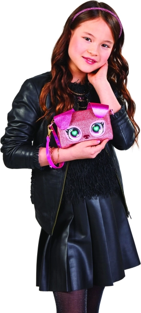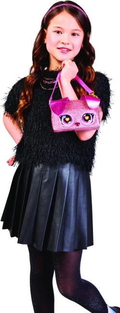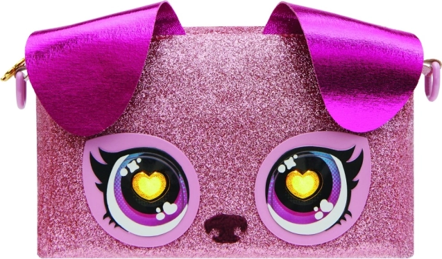 Niech styl mówi za Ciebie. Szczeniak PURSE PETS łączy uroczy wygląd kawaii z praktycznymi funkcjami. Naciśnięciem noska łatwo wybierzesz kolor podświetlenia oczu lub uruchomisz tryb tęczy, który przyciąga uwagę na każdym kroku. Różowa, brokatowa powierzchnia, psie uszka i oczy w stylu pop‑art czynią z niej nie do przeoczenia dodatek.