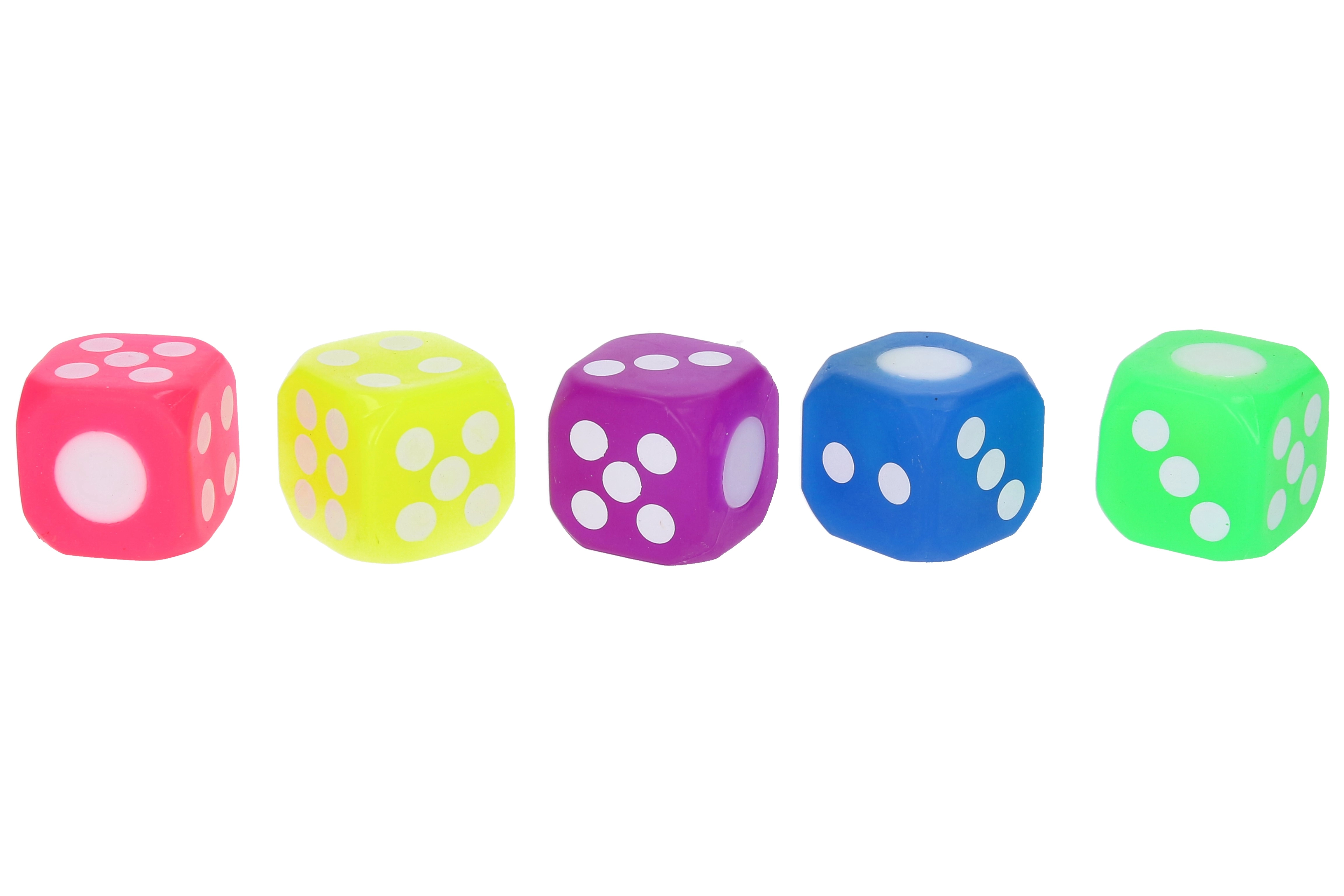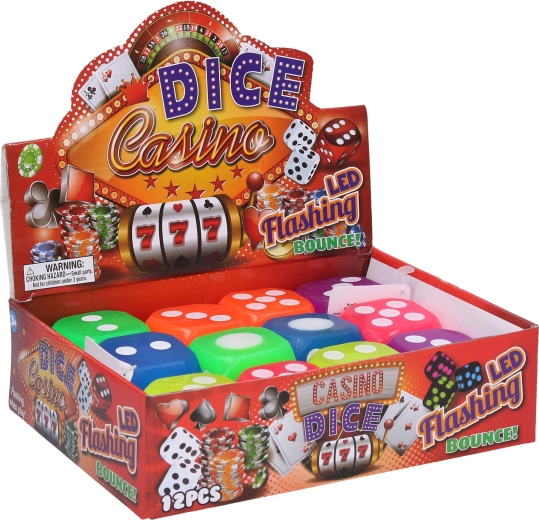 Wybierz spośród 6 atrakcyjnych kolorów – pomarańczowy, niebieski, zielony, żółty, fioletowy i różowy. Kostka jest dostarczana w display boxie po 12 sztuk, co jest idealne dla sklepów, sal gier lub większych wydarzeń.
