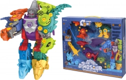 - 5 w 1: pięć samodzielnych dinozaurów + jeden robot