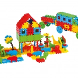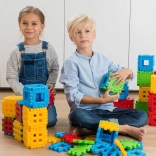 Klocki są w żywych kolorach i różnych kształtach, które wspierają dziecięcą wyobraźnię i kreatywność.