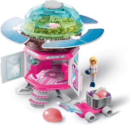 Ten inspirujący zestaw naukowy przeniesie dzieci w świat kosmicznych odkryć. Zbudują specjalną bazę do eksperymentów z roślinami i analizą gleby, złożą mini łazik do eksploracji nieznanych planet i ozdobią modele przy pomocy naklejek. Nie zabraknie też małego modelu astronautki Barbie, która towarzyszy dzieciom w ich wyprawach po wiedzę.