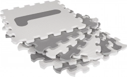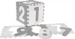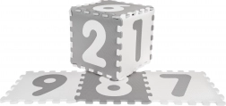 Ta szaro‑biała zestaw 9 sztuk piankowych puzzli z materiału EVA tworzy przyjemnie miękkie i amortyzujące miejsce do zabawy, które izoluje od chłodu podłogi i pomaga chronić przy upadkach. Każdy element ma wyjmowaną cyfrę, dzięki czemu dziecko trenuje rozpoznawanie kształtów i liczb podczas zabawy.