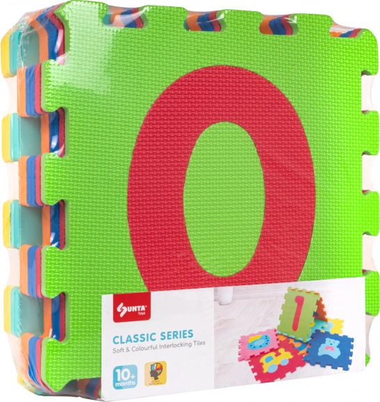 Edukacyjna mata piankowa z cyframi łączy bezpieczną zabawę i naukę. Każdy element o wymiarach ok. 32 × 32 × 1 cm ma wyjmowane cyfry, dzięki którym dzieci ćwiczą motorykę małą, rozpoznawanie kształtów i kolorów oraz pierwsze liczenie. Z 10 elementów łatwo stworzysz powierzchnię do zabawy lub połączysz je w formy przestrzenne (np. kostki).