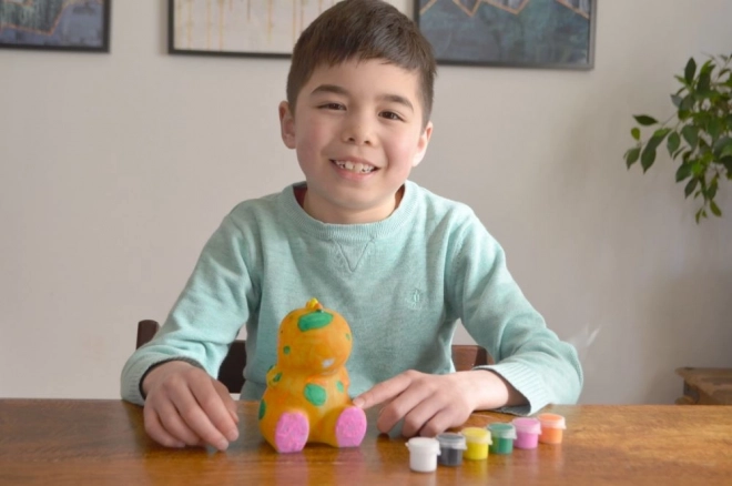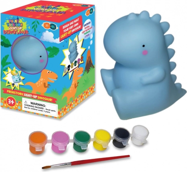 Odkryj zabawny zestaw twórczy, dzięki któremu dzieci pomalują własnego dinozaura i zamienią go w świecącą dekorację do pokoju. Model o wysokości 14 cm wygodnie leży nawet w małych dłoniach, a po pomalowaniu rozświetli półkę lub stolik nocny.