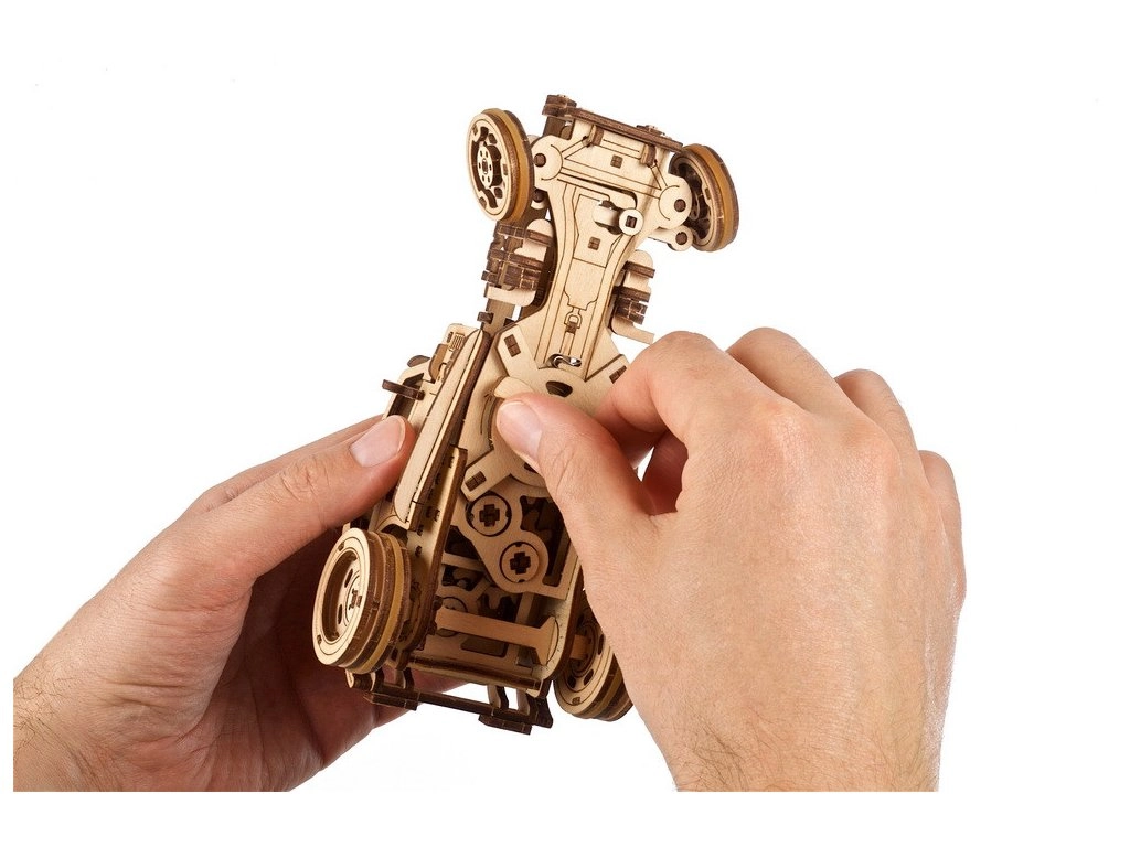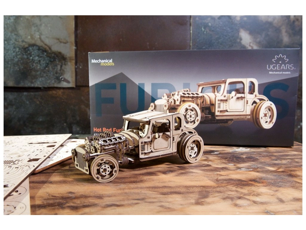 Spraw sobie radość autentycznym hot rodem z warsztatu UGEARS. Model Furious Mouse zachwyci miłośników motoryzacji i układanek 3D: oferuje dwa sposoby napędu (sprężynowy silnik nakręcany kluczem grzechotkowym lub klasyczne przeciągnięcie po równej powierzchni), płynne sterowanie przednimi kołami i bogate detale mechaniczne. Dzięki precyzyjnemu laserowemu wycinaniu elementy świetnie do siebie pasują, więc do montażu nie potrzebujesz kleju ani specjalnych narzędzi.