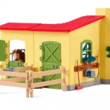 Ta stajnia zawiera detale, takie jak karmidła i jabłka, które wspierają wyobrażeniową zabawę.