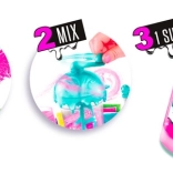 Instrukcja jest prosta i bezpieczna: wsyp mieszankę do kubeczka, dolej wodę do kreski, zamknij, porządnie wstrząśnij i po 5 minutach możesz rozciągać, ugniatać i ozdabiać slime’a. Zestaw świetnie sprawdza się do zabawy w domu, na przyjęciach oraz jako kreatywny prezent.