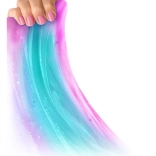 Mieszaj turkus, róż i fiolet, dodawaj gwiazdki i brokat, aby uzyskać oryginalny wygląd slime’u, który aż chce się rozciągać i formować.