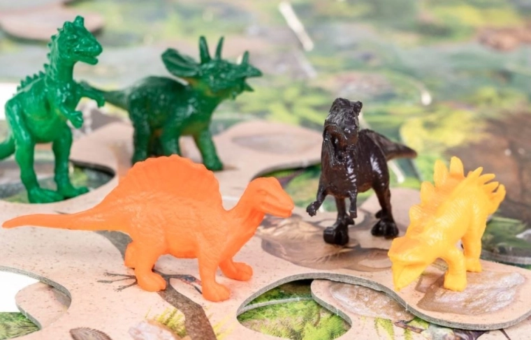 Czy uda ci się odnaleźć wszystkie dinozaury ukryte w dżungli? Plansza jest pełna prehistorycznych gadów, ale czy znajdziesz je wszystkie szybciej niż pozostali gracze?