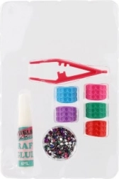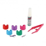 Praktyczny zestaw zawiera pierścionki, klej, pęsetę oraz kolorowe kamyki – dzieci mogą zacząć tworzyć od razu po otwarciu.