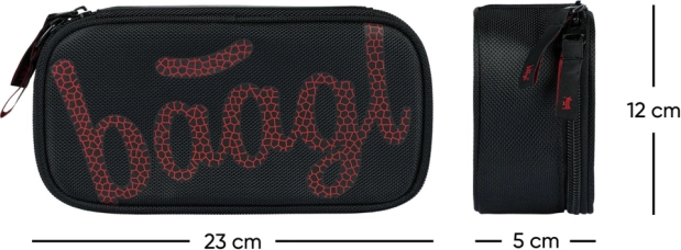 Ten piórnik ma nowoczesny i stylowy wygląd z napisem 'baagl', który pasuje do każdego szkolnego stylu.