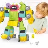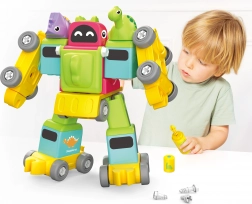 Zabawna śrubowa zestaw konstrukcyjny 2w1: z rozłożonej lokomotywy z 4 wagonami złożysz albo kompletny pociąg z czterema wagonikami, albo jednego robota/dinozaura. W zestawie znajduje się śrubokręt oraz instrukcja, dzięki czemu dzieci poćwiczą małą motorykę, logikę i kreatywność podczas budowania.