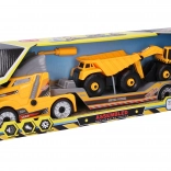 W zestawie znajdują się dwie 16‑centymetrowe maszyny budowlane – wywrotka i koparka – które można przewozić na naczepie. Wolne koła zapewniają płynną jazdę po różnych nawierzchniach, a solidne wykonanie idealnie sprawdza się do codziennej zabawy w domu i w ogrodzie.