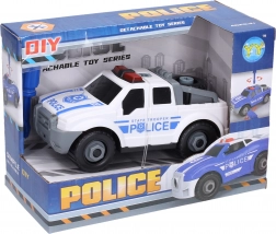 W zestawie znajduje się śrubokręt krzyżakowy z wbudowanym kluczem do nakrętek w rękojeści, więc dzieci mają wszystko, czego potrzebują do montażu i demontażu. Do wyboru są dwie wersje kolorystyczne – biała i niebieska, idealne do każdej kolekcji pojazdów policyjnych.