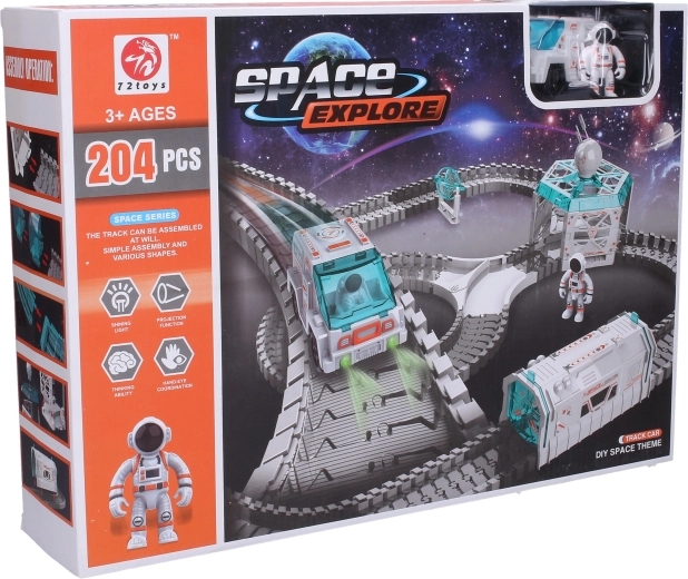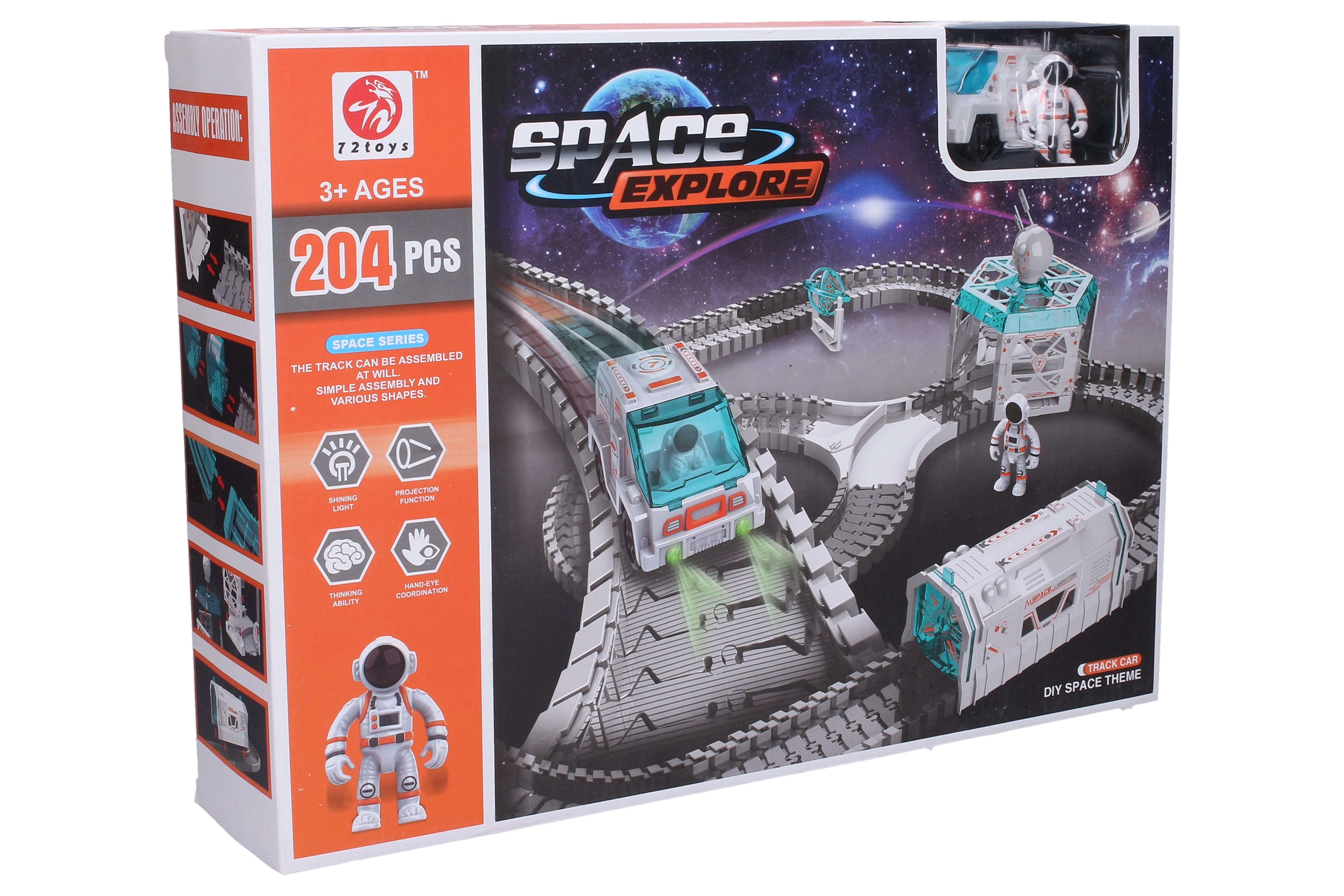 Odkryj przygodę w kosmosie z tym kosmicznym torem wyścigowym o wymiarach 85 × 75 × 32 cm. W zestawie znajdują się samochód, figurka astronauty oraz funkcyjny projektor ze świetlnymi efektami. Tor można dowolnie składać w różne kształty, dzięki czemu zabawa nigdy się nie kończy.
